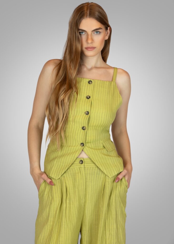 Yellow Striped Pants & Vest by Mango